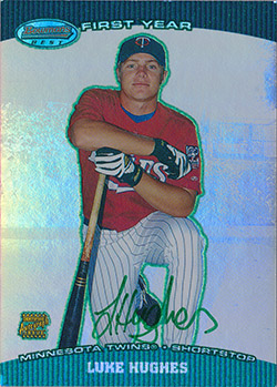 ![]() 2004 Bowman's Best Green Autograph #BB-LTH Luke Hughes (print run: 50) |