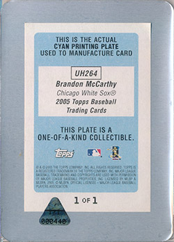 ![]() 2005 Topps Update Printing Plate Cyan #UH264 Brandon McCarthy RC 1/1 |