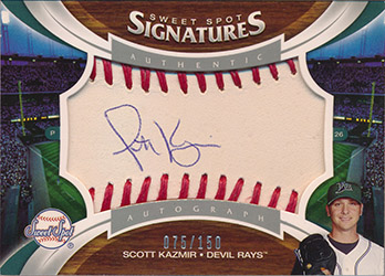 ![]() 2006 Sweet Spot Signatures Red Stitch Blue Ink #169 Scott Kazmir 075/150 |