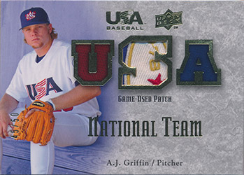 ![]() 2008-09 USA Baseball National Team Jersey Patch #NT-AG A.J. Griffin 45/50 |