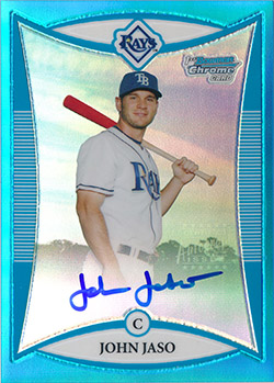 ![]() 2008 Bowman Chrome Prospects Autograph Blue Refractors #BCP264 John Jaso 085/150 |