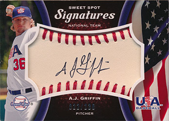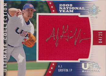 ![]() 2008 Ultimate Collection USA Baseball Jersey Autographs #USA-AG A.J. Griffin 04/25 |