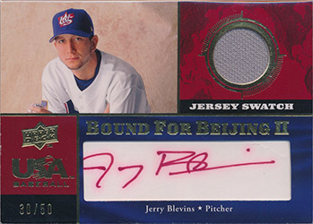 ![]() 2008 USA Baseball Bound for Beijing II Signature Jersey #WC3 Jerry Blevins 30/50 |