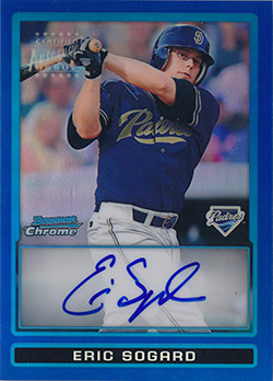 ![]() 2009 Bowman Chrome Prospects Autograph Blue Refractors #BCP127 Eric Sogard 145/150 |