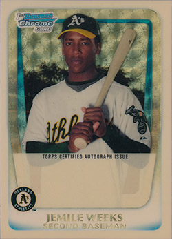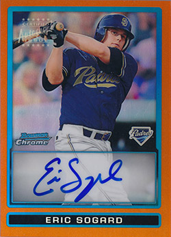 ![]() 2009 Bowman Chrome Prospects Autograph Orange Refractors #BCP127 Eric Sogard 11/25 |