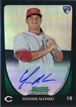 ![]() 2011 Bowman Chrome Rookie Autographs Refractors #210 Yonder Alonso RC 482/500 |