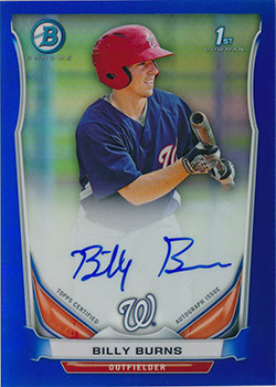 ![]() 2014 Bowman Chrome Prospect Autographs Blue Refractors #BCAP-BB Billy Burns 005/150 |