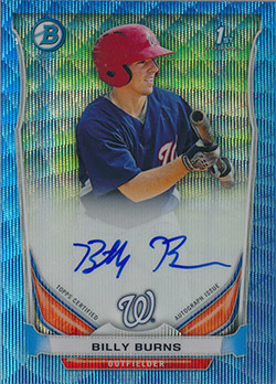 ![]() 2014 Bowman Chrome Prospect Autographs Blue Wave Refractors #BCAP-BB Billy Burns 48/50 |