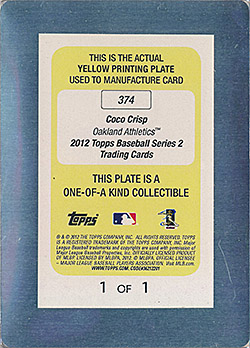 ![]() 2012 Topps Printing Plate Yellow #374 1/1 |