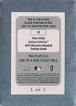 ![]() 2014 Bowman Printing Plate Black #15 1/1 |