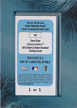 ![]() 2015 Topps Allen and Ginter Mini Framed Printing Plate Cyan #48 1/1 |