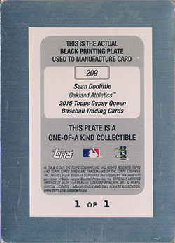 ![]() 2015 Topps Gypsy Queen Printing Plate Black #209 1/1 |