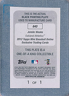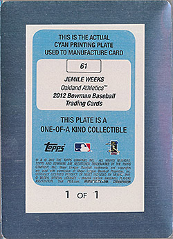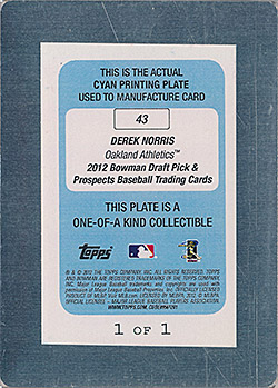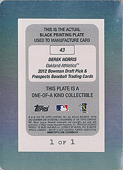 ![]() 2012 Bowman Draft Printing Plate Black RC #43 1/1 |