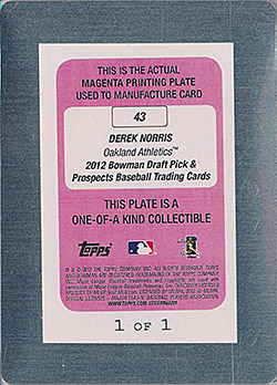 ![]() 2012 Bowman Chrome Draft Printing Plate Magenta RC #43 1/1 |