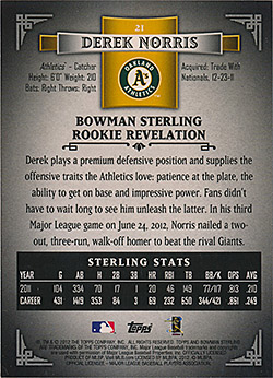 ![]() 2012 Bowman Sterling Black Refractors RC #21 18/25 |