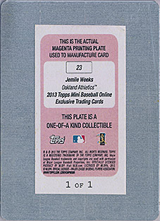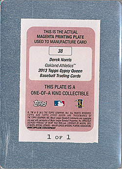 ![]() 2013 Topps Gypsy Queen Printing Plate Magenta #38 1/1 |