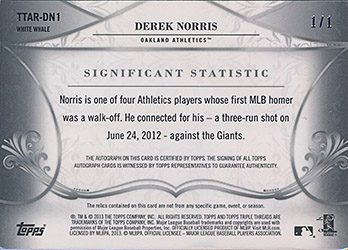 ![]() 2013 Topps Triple Threads Relic Autographs #TTAR-DN1 10/18 |