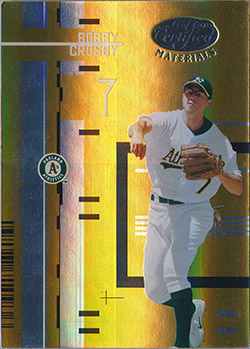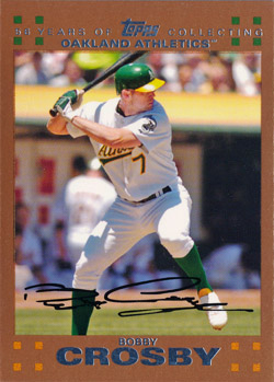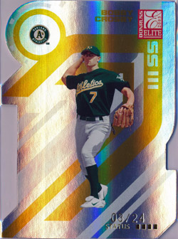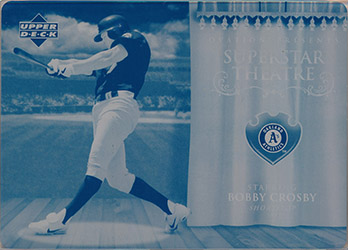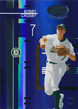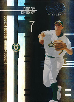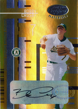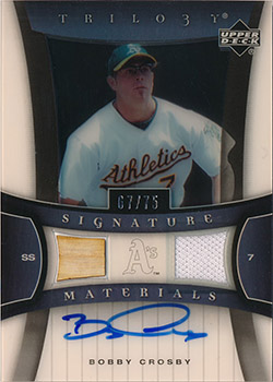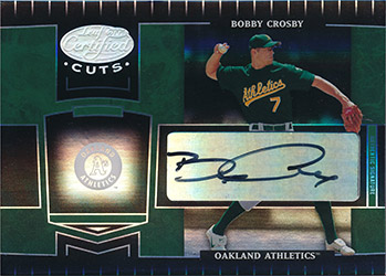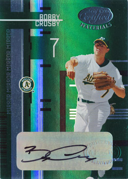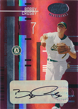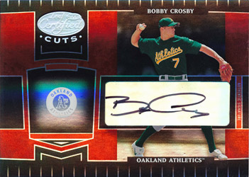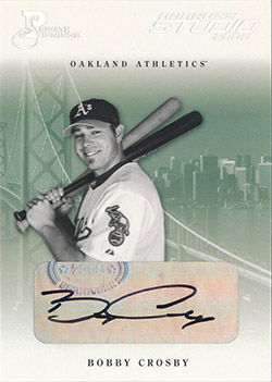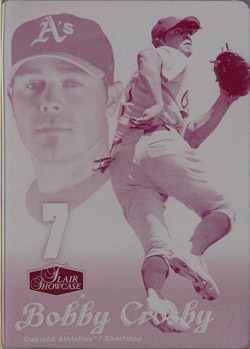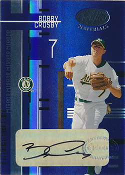 ![]() 2005 Reflections Dual Signatures #BCKG Bobby Crosby/Khalil Greene (print run: 75) |
