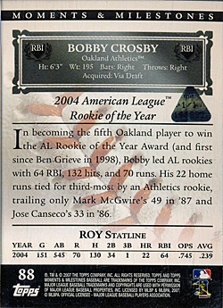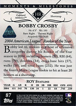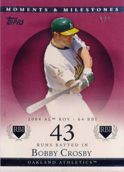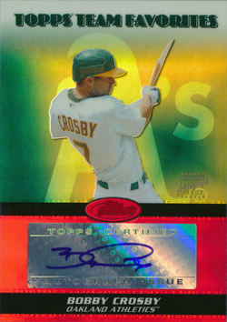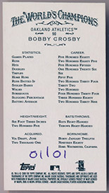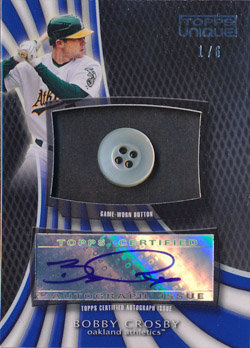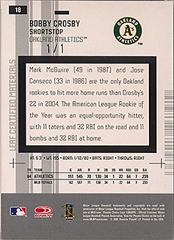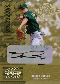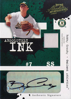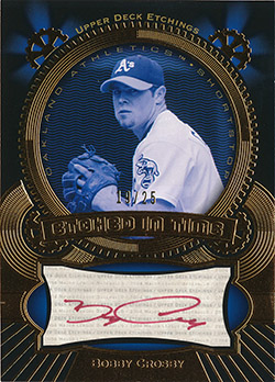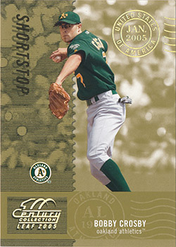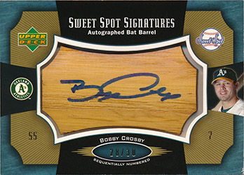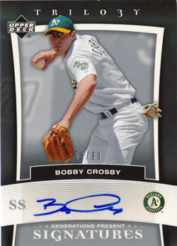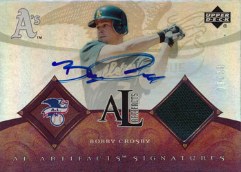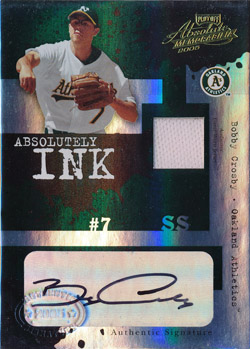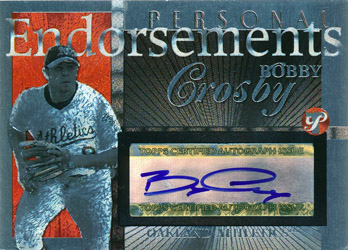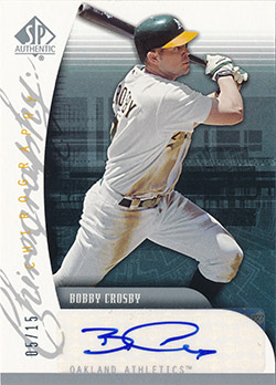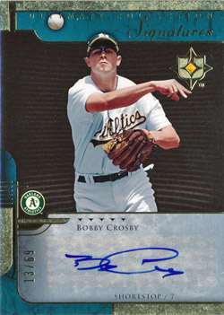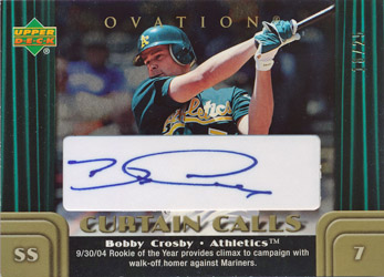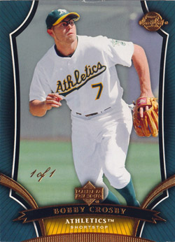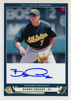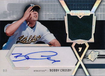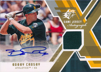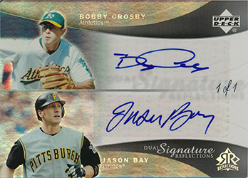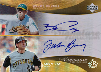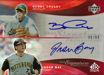 ![]() 2005 Reflections Dual Signatures #BCJB Bobby Crosby/Jason Bay (print run: 75) |