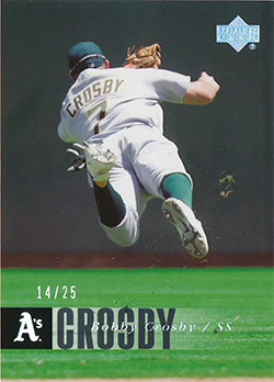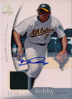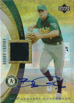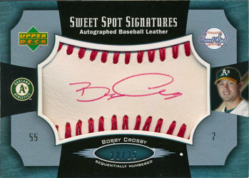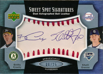 ![]() 2005 Sweet Spot Signatures Dual Red Stitch #SSD-CG Bobby Crosby/Khalil Greene 06/25 |