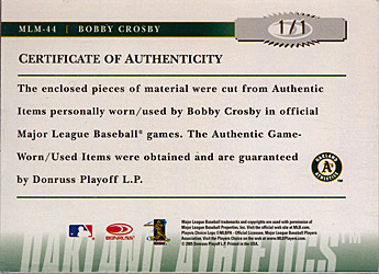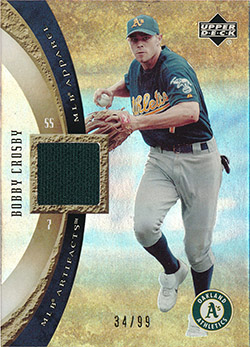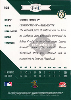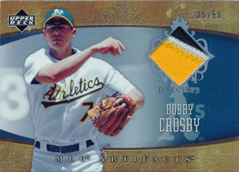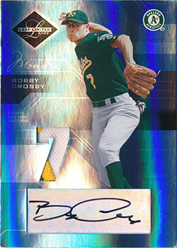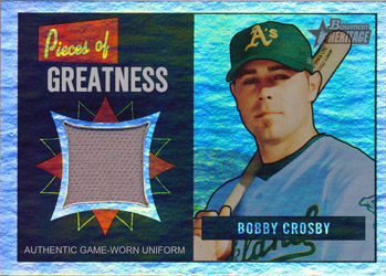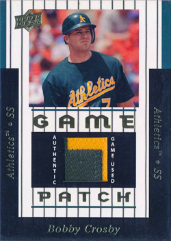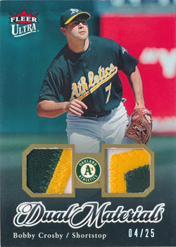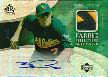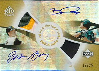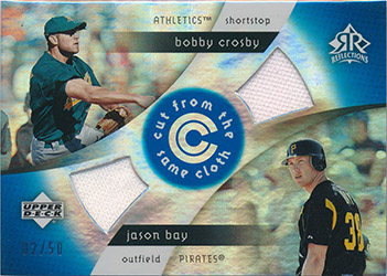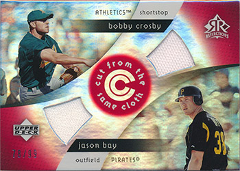 ![]() 2005 Reflections Cut From the Same Cloth Dual Patch #CCP-CB Bobby Crosby/Jason Bay 08/99 |