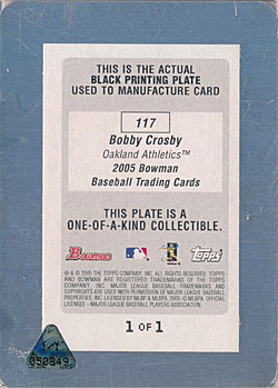 ![]() 2005 Bowman Printing Plate Black #117 1/1 |