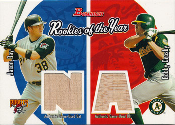 ![]() 2005 Bowman Rookies of the Year Dual Bats #ROY-BC Bobby Crosby/Jason Bay |