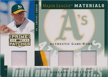 ![]() 2005 Prime Patches Major League Materials Quad Swatch Prime #MLM44 2/2 |
