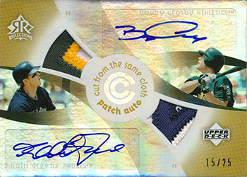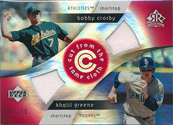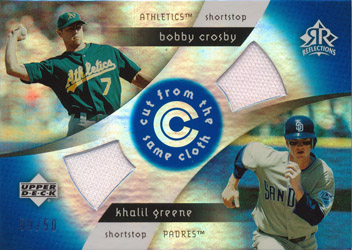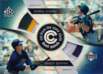 ![]() 2005 Reflections Cut From the Same Cloth Dual Patch #CCP-CG Bobby Crosby/Khalil Greene 96/99 |