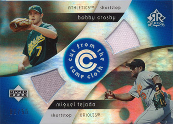 ![]() 2005 Reflections Cut From the Same Cloth Dual Jerseys Blue #CC-CT Crosby/Tejada 01/50 |