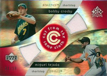 ![]() 2005 Reflections Cut From the Same Cloth Dual Jerseys Red #CC-CT Crosby/Tejada 30/99 |