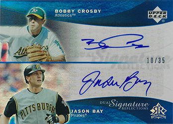 ![]() 2005 Reflections Dual Signatures Blue #BCJB Bobby Crosby/Jason Bay 10/35 |