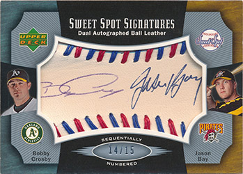 ![]() 2005 Sweet Spot Signatures Dual Red-Blue Stitch #SSD-BJ Bobby Crosby/Jason Bay 14/15 |