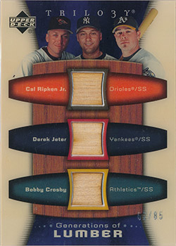 ![]() 2005 Upper Deck Trilogy Generations of Lumber Triple #GEN-RJC Ripken/Jeter/Crosby 62/85 |