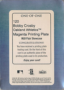 ![]() 2006 Flair Showcase Printing Plate Magenta #120 1/1 |
