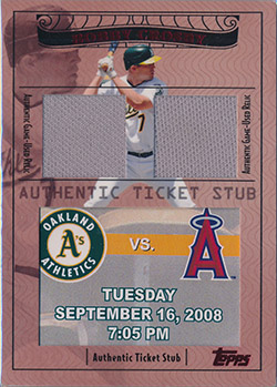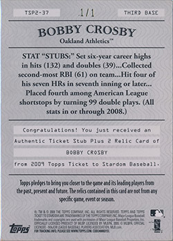 ![]() 2009 Topps Ticket to Stardom Ticket Stubs Plus Memorabilia Dual Red #TSP2-37 1/1 |