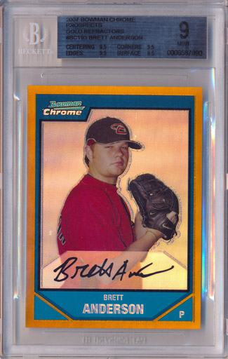 ![]() 2007 Bowman Chrome Prospects Gold Refractors #BC195 31/50 BGS 9 |
