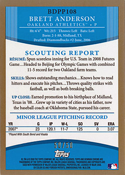![]() 2008 Bowman Chrome Draft Prospects Gold Refractors #BDPP108 50/50 |