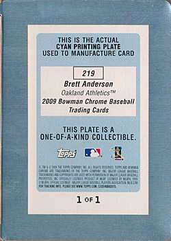 ![]() 2009 Bowman Chrome Printing Plate Cyan RC #219 1/1 |