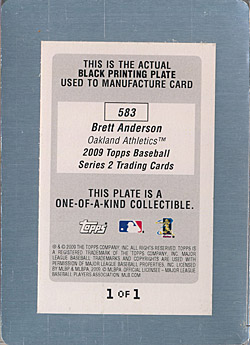 ![]() 2009 Topps Printing Plate Black RC #583 1/1 |