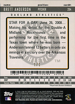 ![]() 2009 Topps Ticket to Stardom Red RC #204 1/1 |