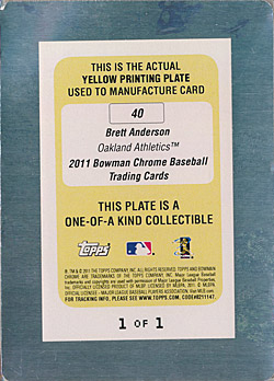 ![]() 2011 Bowman Chrome Printing Plate Yellow #40 1/1 |