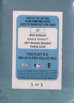 ![]() 2011 Bowman Printing Plate Cyan #51 1/1 |