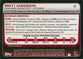 ![]() 2011 Topps Diamond Duos Dual Relics #DDR6 Anderson/Cahill 42/50 |