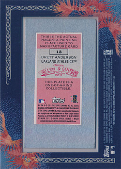 ![]() 2011 Topps Allen and Ginter Mini Framed Printing Plate Magenta #13 1/1 |