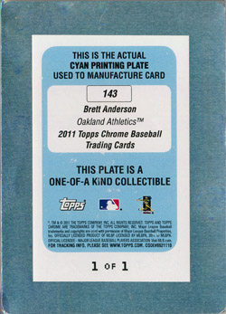 ![]() 2011 Topps Chrome Printing Plate Cyan #143 1/1 |