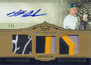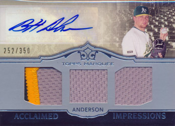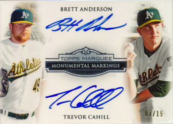 ![]() 2011 Topps Marquee Monumental Markings Autographs Dual #MMD-AC Anderson/Cahill 07/15 |