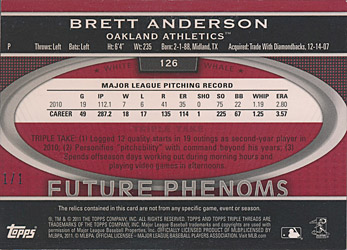 ![]() 2011 Topps Triple Threads Jersey Autograph #126 81/99 |