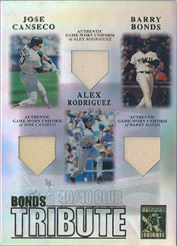 ![]() 2003 Topps Tribute Contemporary Bonds Tribute 40/40 Club Relics #BT-CBR Canseco/A-Rod/Bonds |