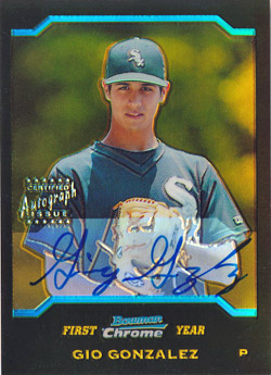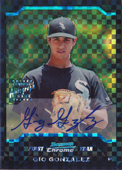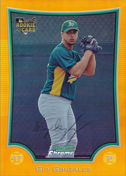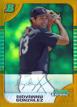 ![]() 2004 Bowman Chrome Draft Autograph Gold Refractors RC #BDP175 (print run: 50) |